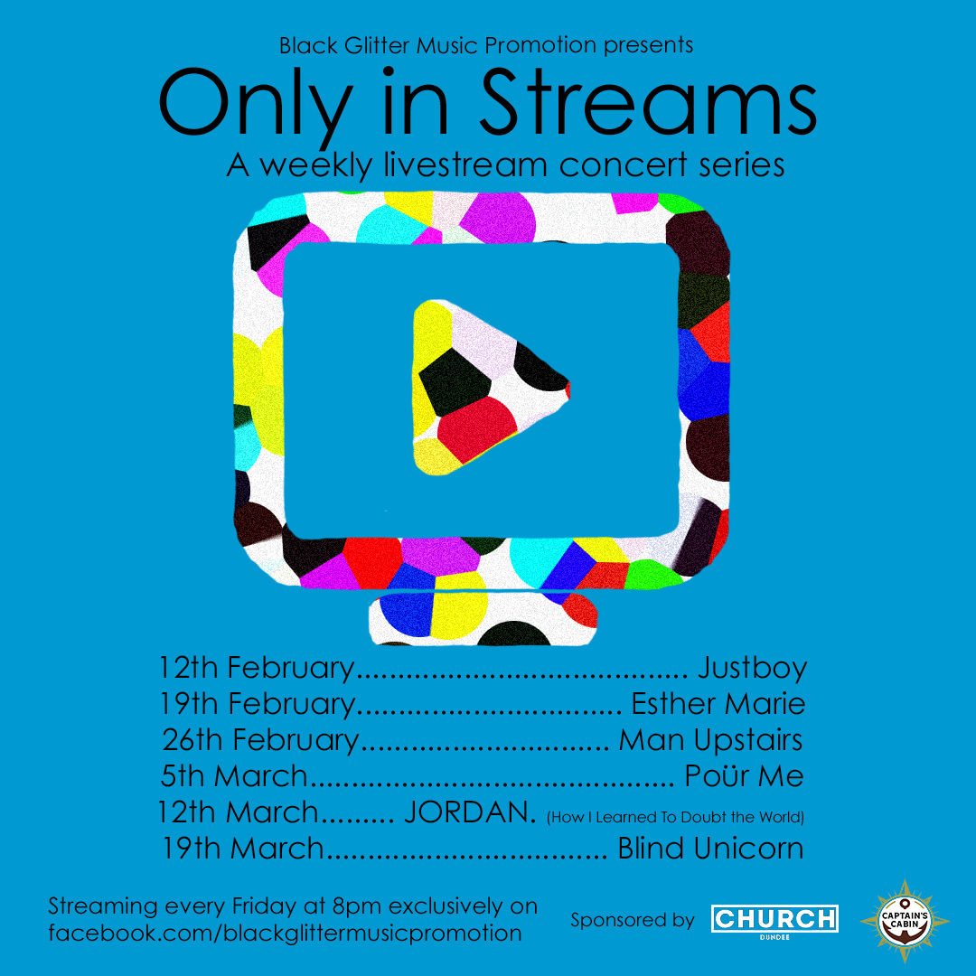 Black Glitter Music Promotion in association with Church Dundee and The Captain’s Cabin will be kicking off 2021 with ‘Only In Streams’ a series of exclusive livestream concerts, featuring six up-and-coming artists from Scotland’s alternative music scene.