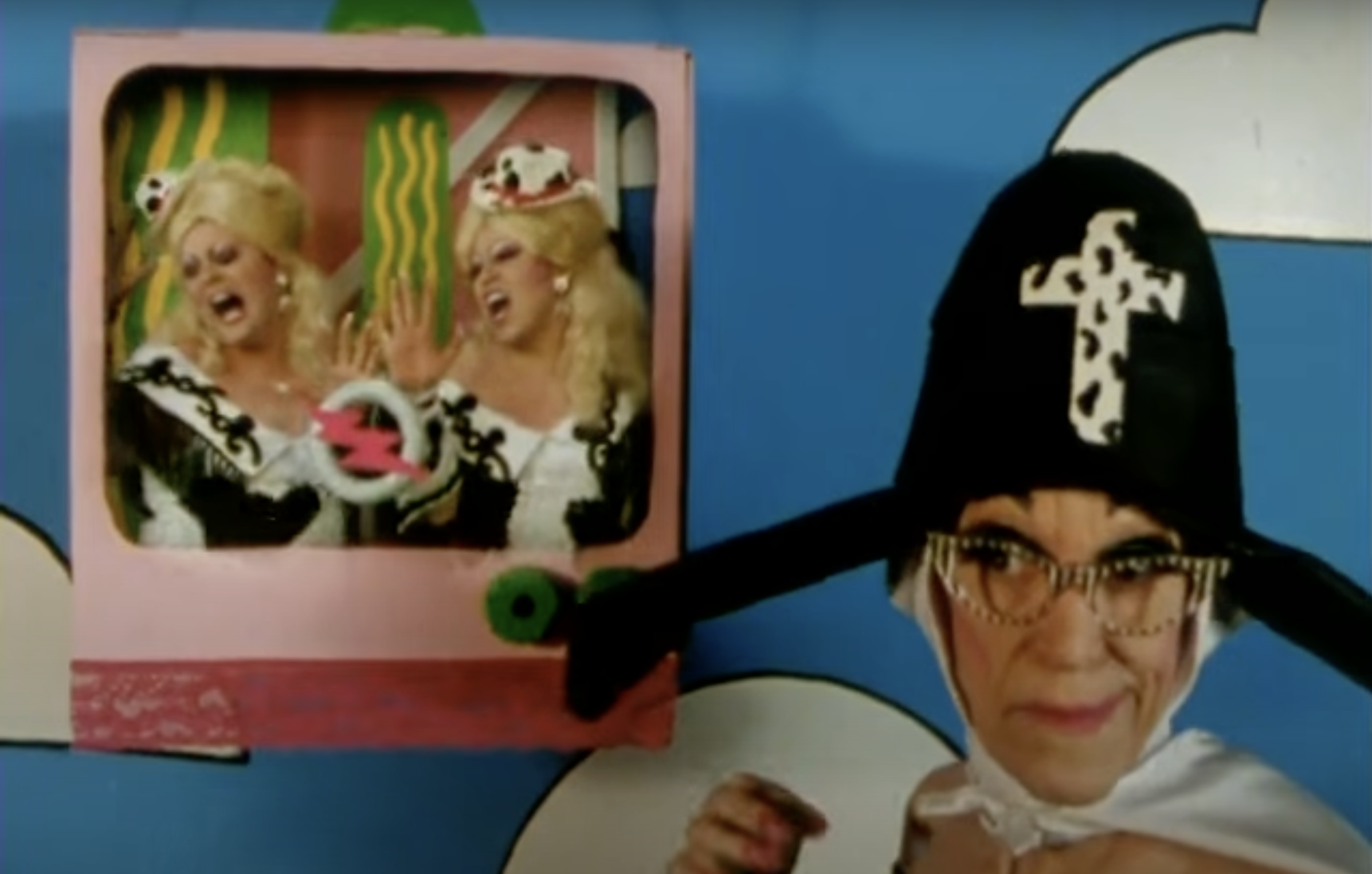 - The set design is a literal technicolor nightmare. And when I say cowprint is everywhere, cowprint is EVERYWHERE. It is a feast for the eyes, wigs costumes and walls. Scenes are intercut with hand-drawn animations looking like school-house rock smoked brown weed out behind the dumpster before giving this movie a try. It really is a feast for the eyes.